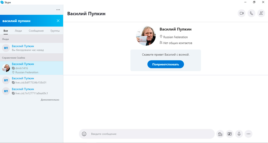 Как найти человека в Скайпе по имени и фамилии? Можно пытаться найти друзей по их реальному имени или по нику, если они указали их в своем профиле. Вводим известные нам данные в поле поиска так же, как искали идентификатор.