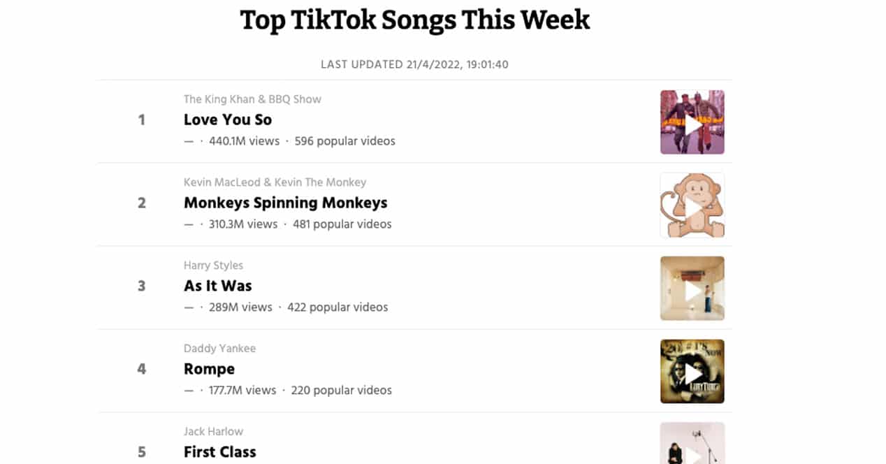 Примером является то, что Токборд. Зайдя на его страницу, мы увидим недельный топ с темами, которые повторялись больше всего за последние дни. Это список вроде Los 40 Principales, только основанный на больших данных, сгенерированных TikTok. Интернет предлагает нам всю эту информацию с первого взгляда, без отвлекающих факторов или других элементов, которые мешают нам узнать песни, которые у всех на устах.