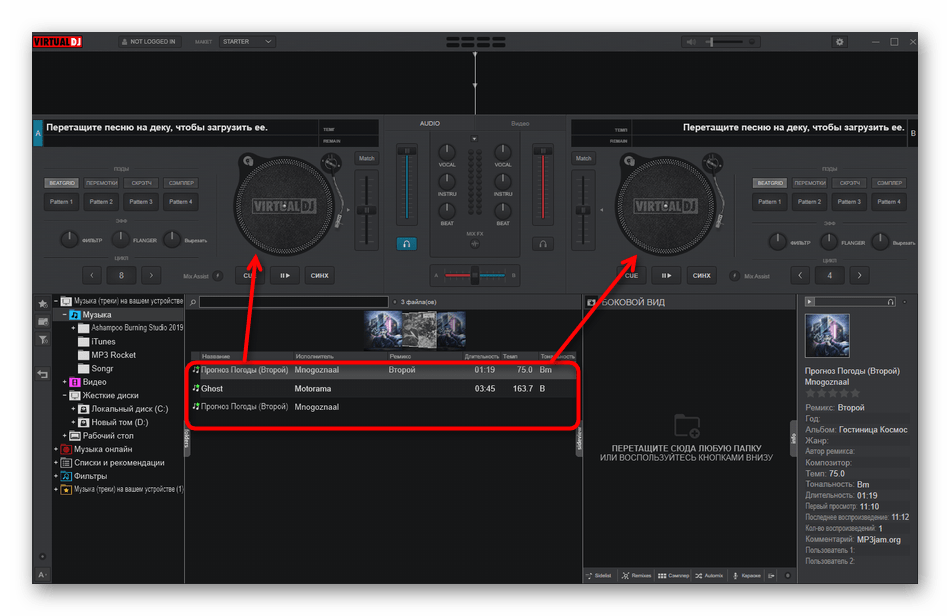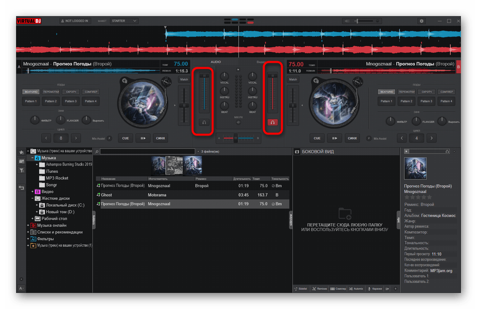 К сожалению, сохранить готовый результата через VirtualDJ не получится, поскольку цель у программы состоит немного в другом. Однако она отлично подойдет, если вы желаете почувствовать себя диджеем и замиксовать несколько треков в один.