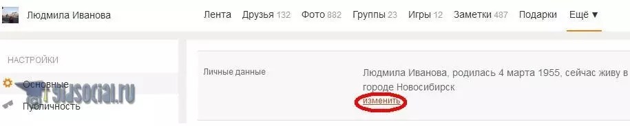 Второй вариант – щелкнуть по кнопке «Еще» и в строке «Личные данные» выбрать «Изменить».