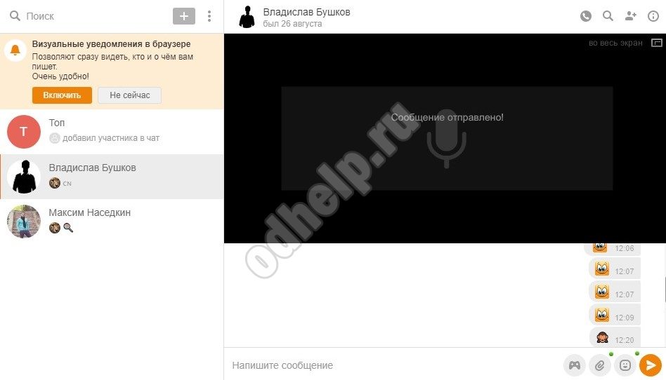 Как послать голосовое сообщение в «Одноклассниках» другому пользователю?