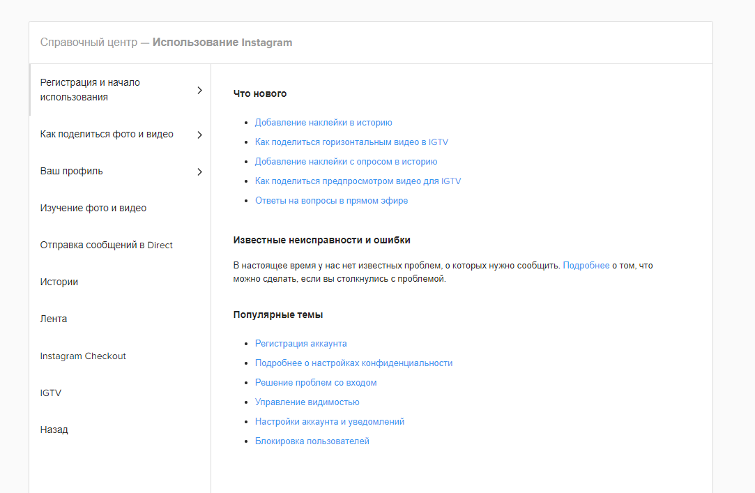 - Многие темы не освещены в справочном центре Instagram.