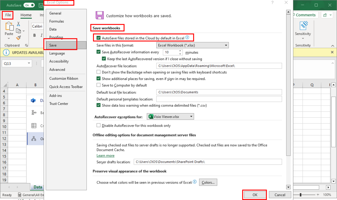 Если вы не видите, что автосохранение включается само по себе после сохранения книги в облаке, это означает, что функция автосохранения неактивна из серверной части. Чтобы включить его, выполните следующие действия: