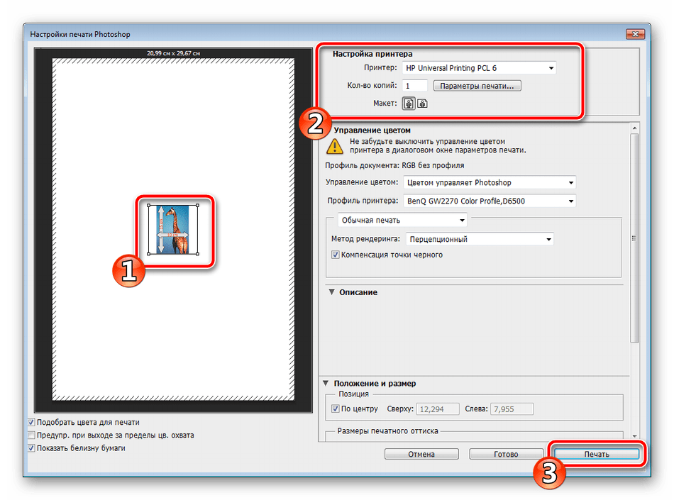 После всех настроек кликните на «Печать» и дождитесь выхода готового листа с принтера. При необходимости обрежьте белые края листа, чтобы получить только заполненную страницу фото.