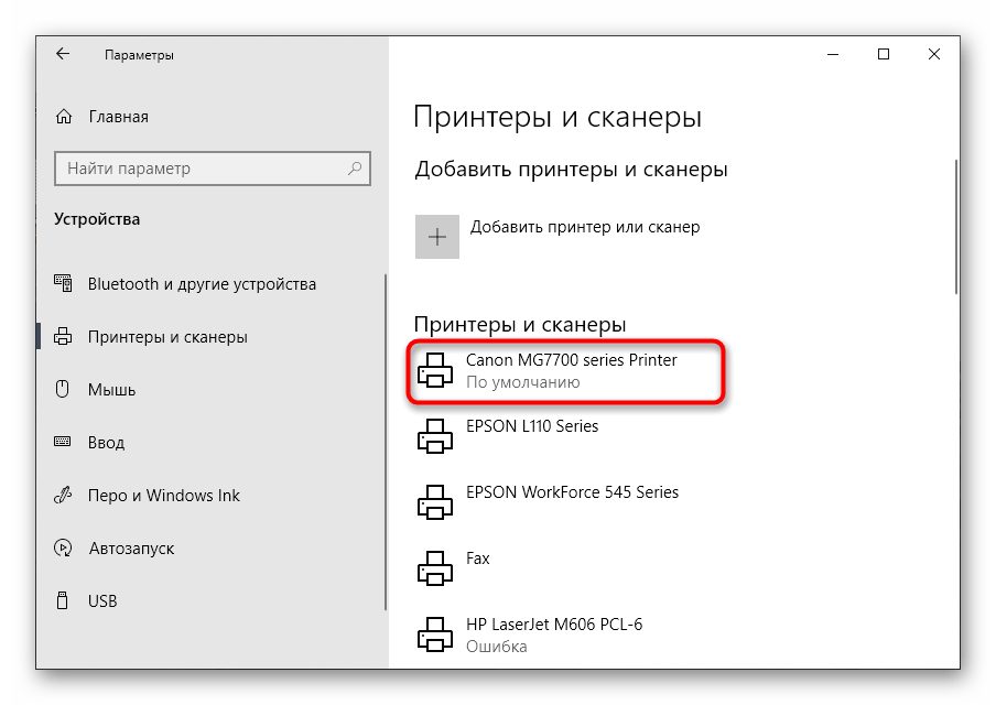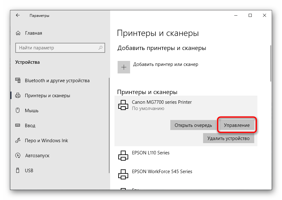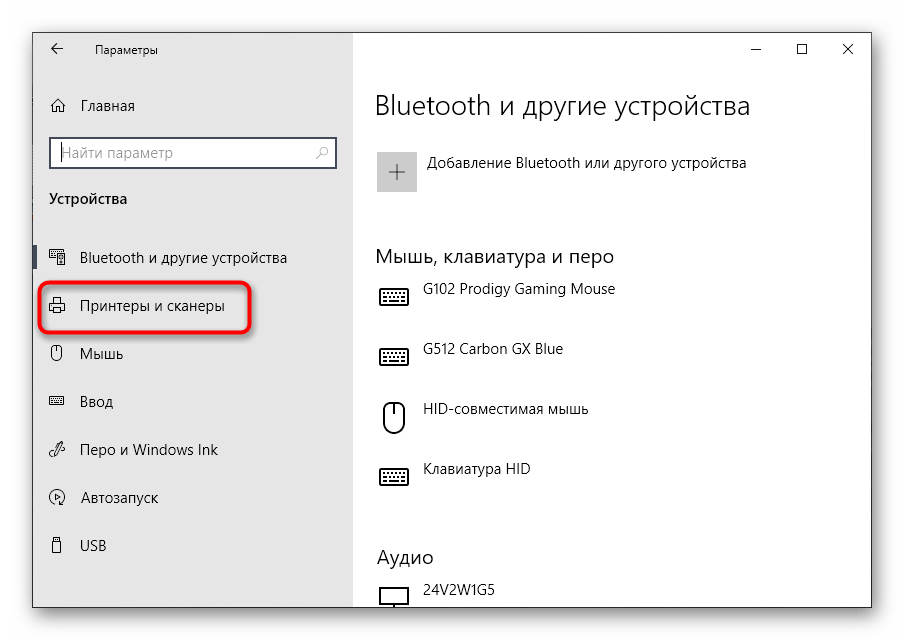 Через левую панель перейдите в категорию «Принтеры и сканеры».