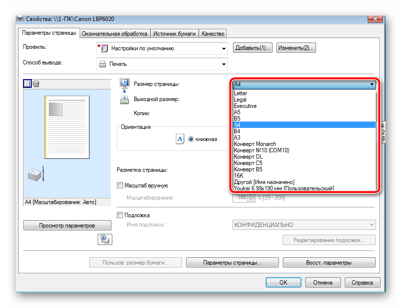 Также, если средство предлагает выбрать тип бумаги, выставьте используемый или наиболее подходящий.