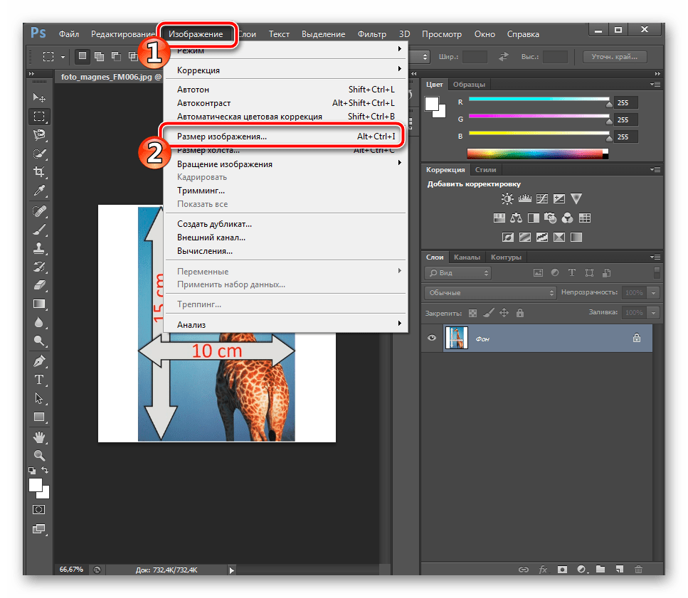 Перейдите к настройке размеров через меню «Изображение»-«Размер изображения».
