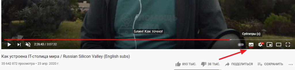 Теперь рассмотрим отдельно включение и выключение субтитров в видео на Youtube.