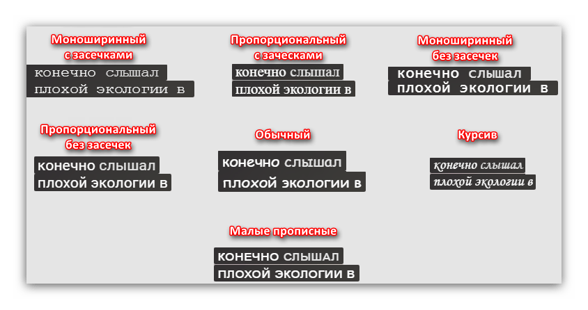 Эта строка отвечает за изменения вида текста. Всего пользователю на выбор предлагается 7 вариантов отображения субтитров. По умолчанию в роликах используется шрифт «Обычный».