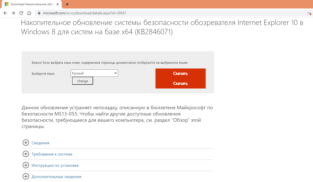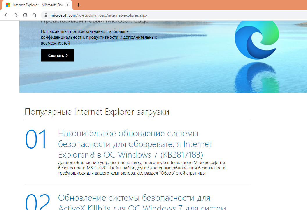 Обновление браузера Интернет Эксплорер через сайт разработчика
