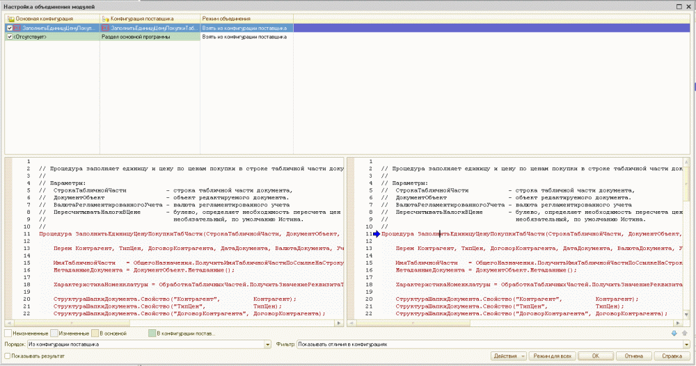 - Типов. (прежняя) «ТипСтарый_2». Для отслеживания изменений фирмы 1С в новой типовой версии;