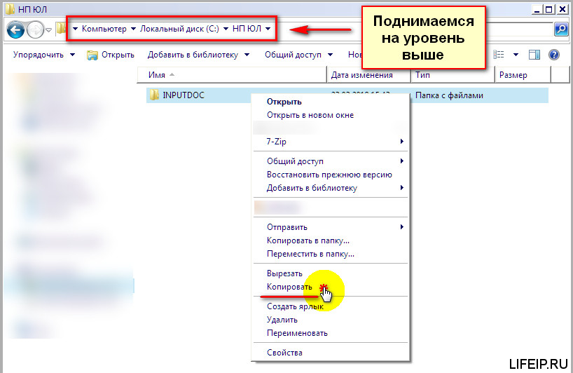 У меня программа «Налогоплательщик ЮЛ» находится по пути «C:\НП ЮЛ\INPUTDOC». Значит я буду копировать папку из пути «C:\НП ЮЛ», папку «INPUTDOC».