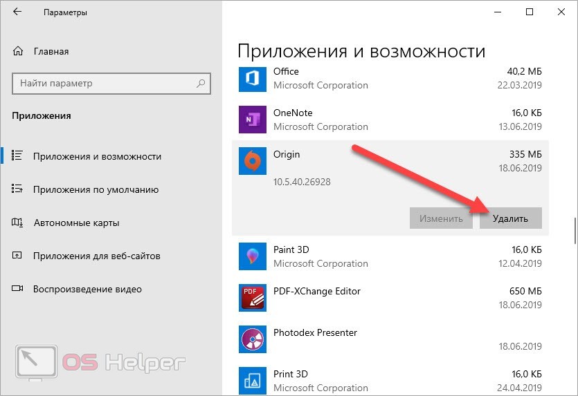 - В списке программ найдите Origin, выделите данную позицию и кликните на «Удалить».