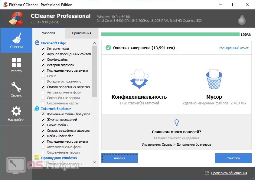 После описанной процедуры желательно очистить компьютер от оставшихся файлов, кэша и прочего «мусора». Для этой цели можно воспользоваться приложением CCleaner, которое загружается по представленной . Через программу вы можете удалить Origin, а затем выполнить очистку системы и реестра.