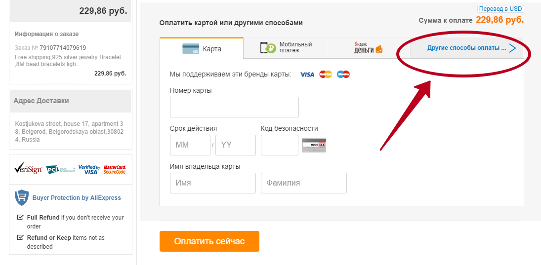 Как оплатить покупку на Алиэкспресс картой Сбербанка