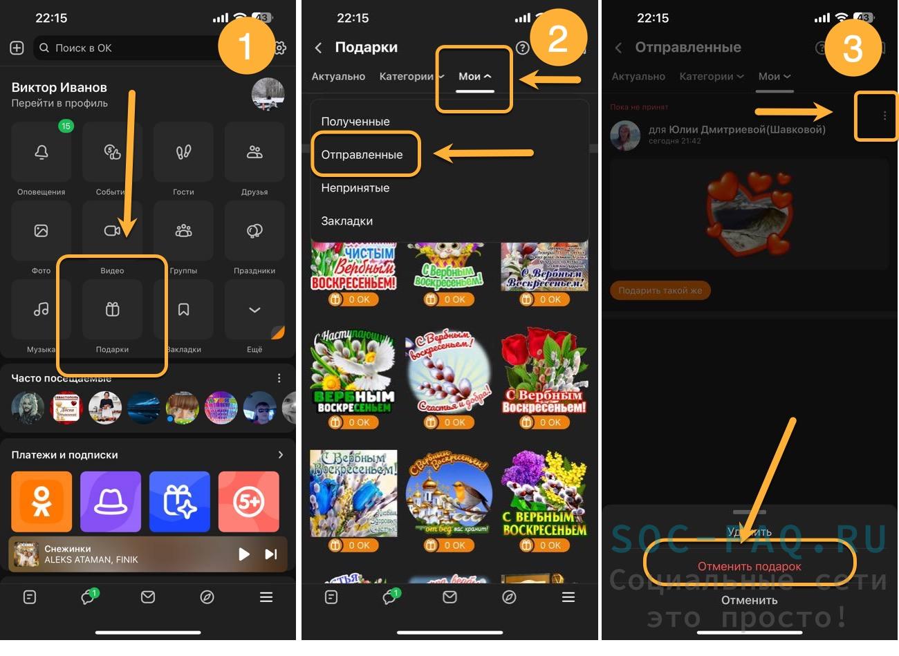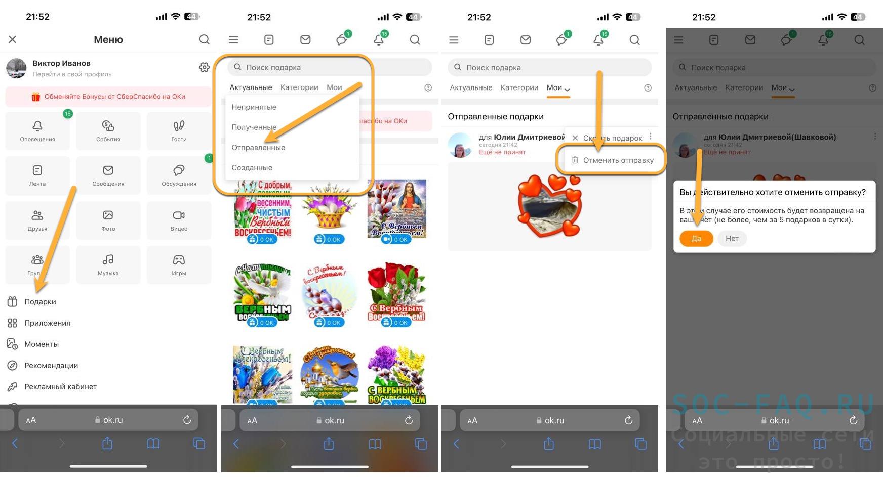 Как отменить подарок в «Одноклассниках » до того, как получатель его принял?