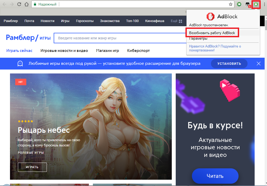 Отключение AdBlock Plus на конкретной странице в Google Chrome