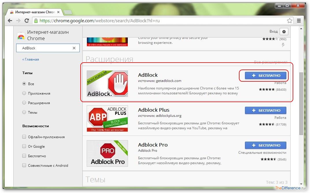 2.Пишем AdBlock в строке поиска и жмём на кнопку.
