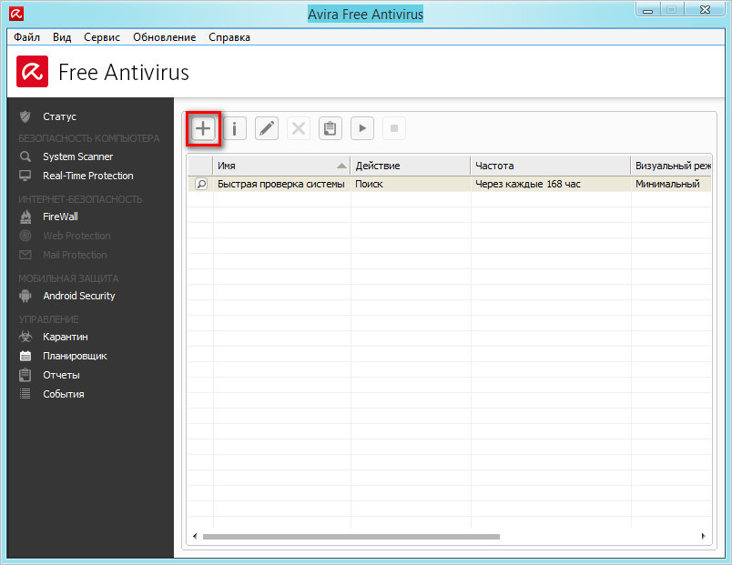 Для автоматизации обновления в Avira предусмотрен планировщик, который позволяет настроить обновление баз по удобному вам графику.
