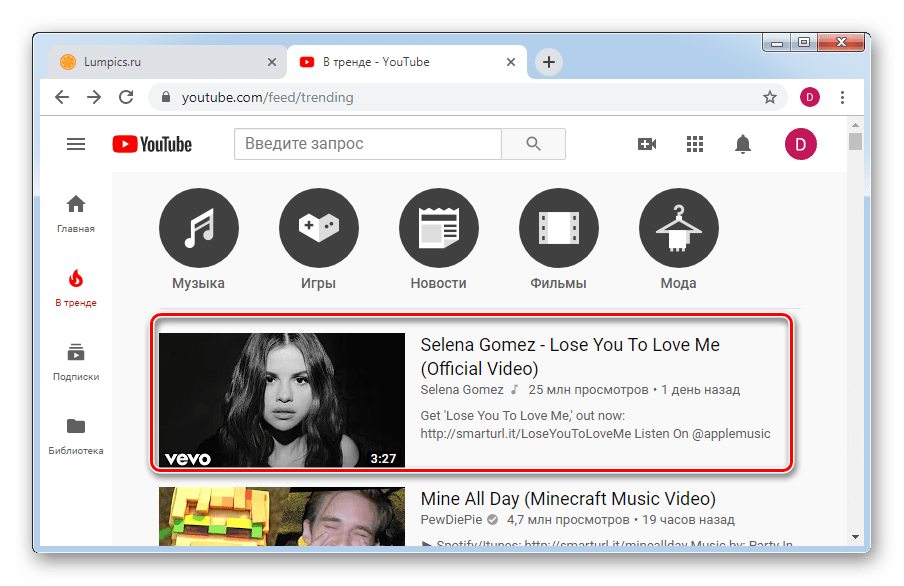 - Зайдите на сайт YouTube и выберите любой ролик, который хотите посмотреть.