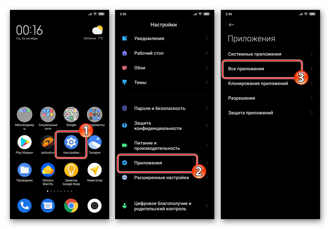 - Откройте «Настройки» ОС Андроид, перейдите в «Приложения», тапните «Все приложения».