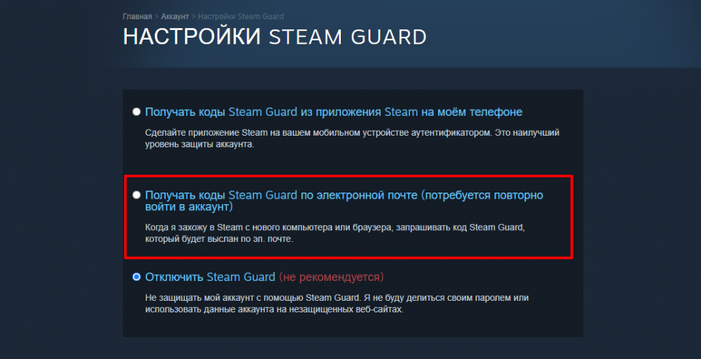 Теперь все коды активации будут приходить на вашу электронную почту. Конечно уровень защиты вашего аккаунта снизится после подобных действий, но с другой стороны, как уже говорилось ранее, если на вашем аккаунте нет игр на большую сумму, то смысла в подобной защите тоже нет.