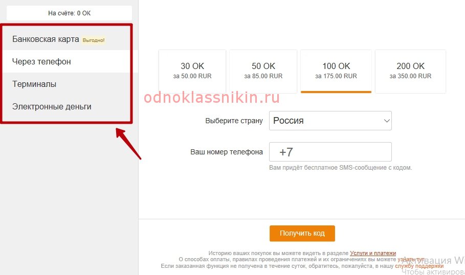 Для получения доступа к использованию услуг требуется иметь на счету Оки, которые оплачиваются через телефон по СМС, с помощью электронных денег (WebMoney, Яндекс.Деньги), терминалов и банковских карточек. Для перечисления денежных средств необходимо под аватаркой кликнуть на кнопку ПОПОЛНИТЬ СЧЕТ, указать сумму и выбрать удобный способ оплаты.