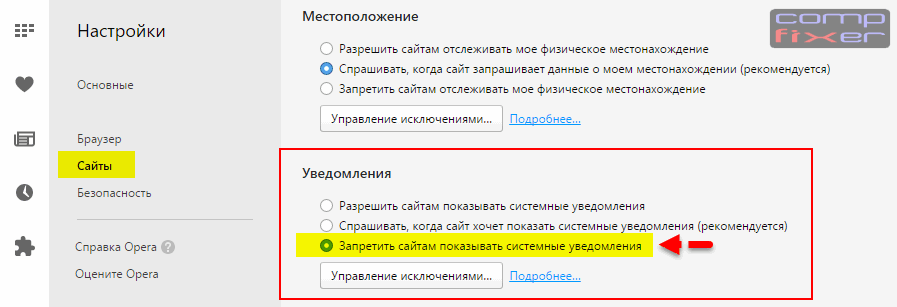 . Т.е. больше вы не увидите в Опере ни одного вопроса о подписке на обновления и вам не нужно блокировать каждый