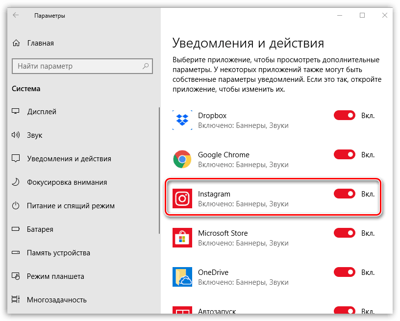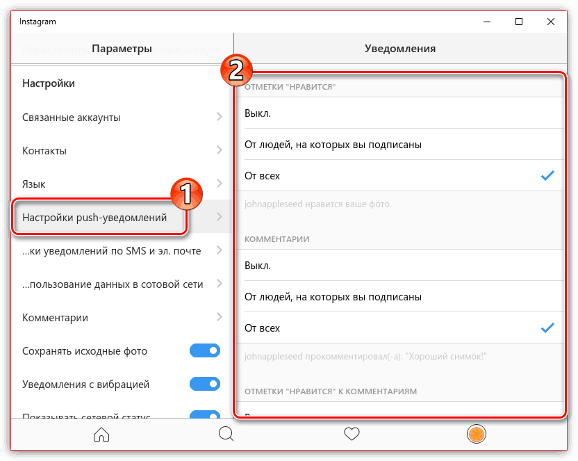 Благодаря этому, на вашем экране при каждом событии в Инсте теперь будут появляться соответствующие «окошки».