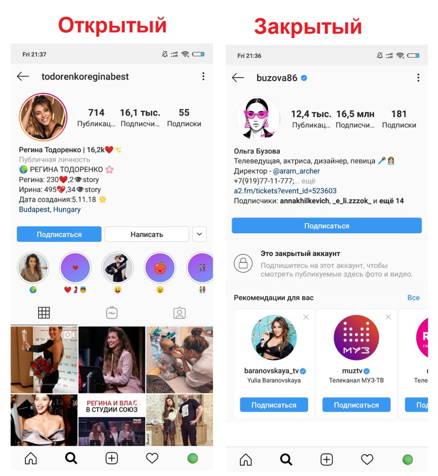 Визуальные отличия закрытого и открытого аккаунта в Инстаграм