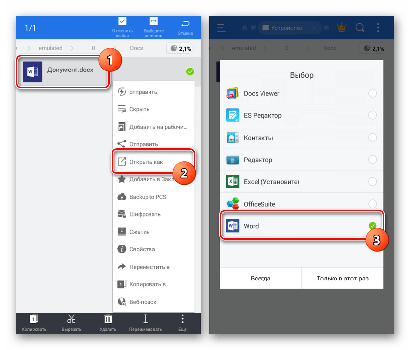 Для открытия также можно ограничиться любым другим файловым менеджером, выбрав Microsoft Word в качестве средства просмотра.