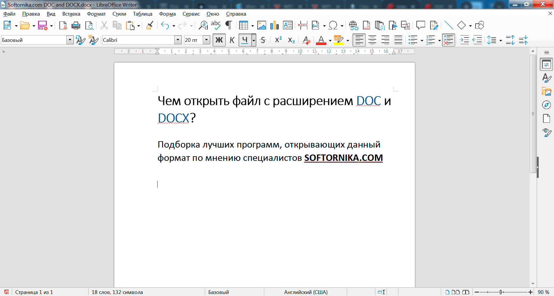 По мнению многих пользователей, этот бесплатный продукт является лучшим. В нем можно создавать и редактировать объекты Word, к тому же он работает с форматами .doc и .docx. У него простой интерфейс, так что даже пользователь с минимальным запасом знаний быстро разберется. Функционал широкий, в редакторе масса инструментов для форматирования текста, исправления ошибок в режиме реального времени, вставки изображений, конвертирования и экспорта документов в другие расширения.