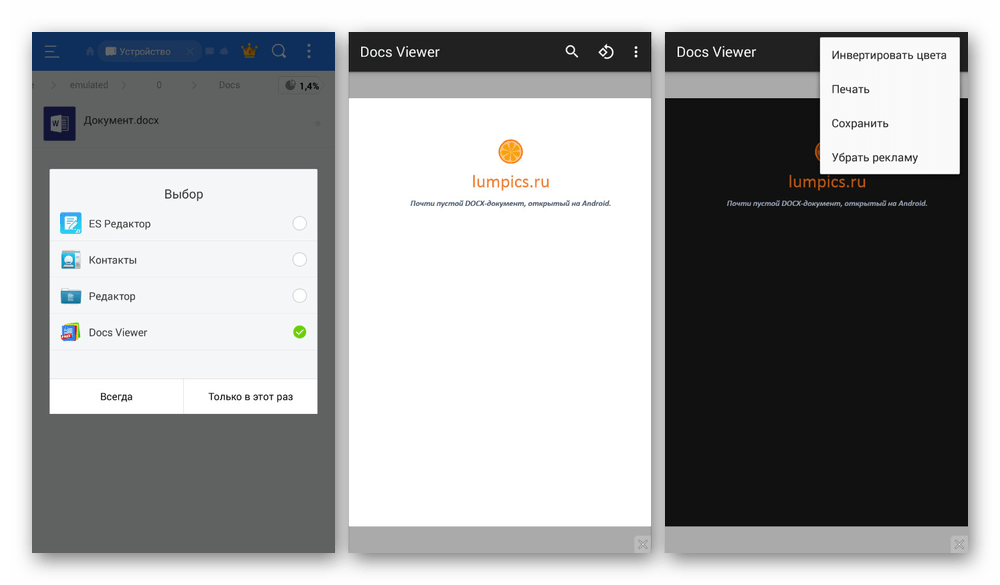 Настоящее ПО отлично справляется с открытием документов DOC и DOCX вне зависимости от содержимого, но имеет ряд недостатков. Избавиться от них можно путем приобретения платной версии в магазине приложений.