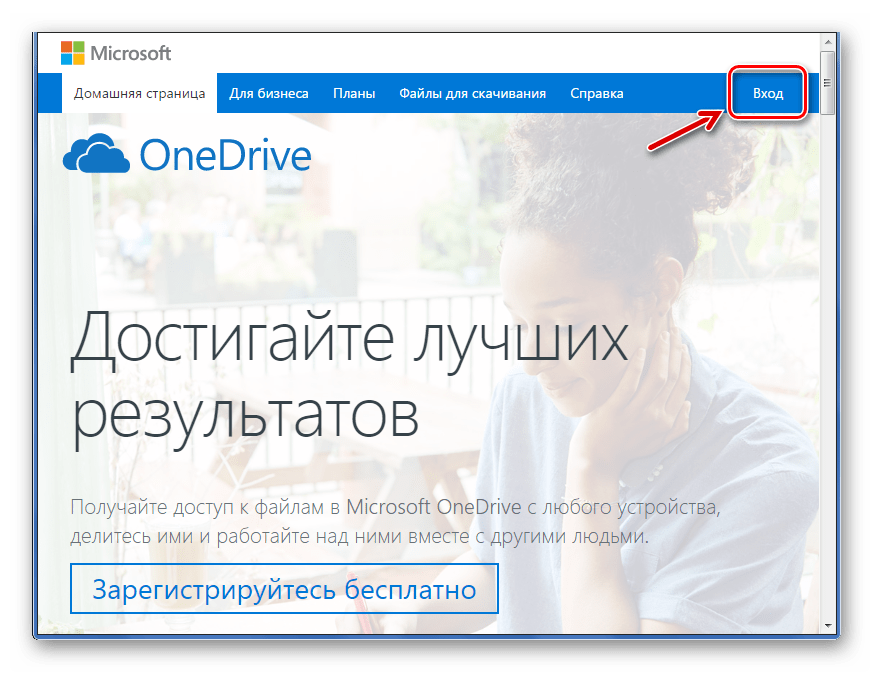 - Перейдите на страницу сервиса OneDrive и нажмите «Вход».
