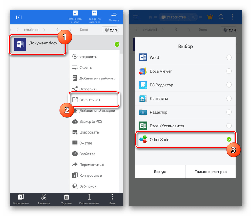 Как и в случае с Microsoft Word, OfficeSuite можно использовать для открытия документа напрямую из файлового менеджера.