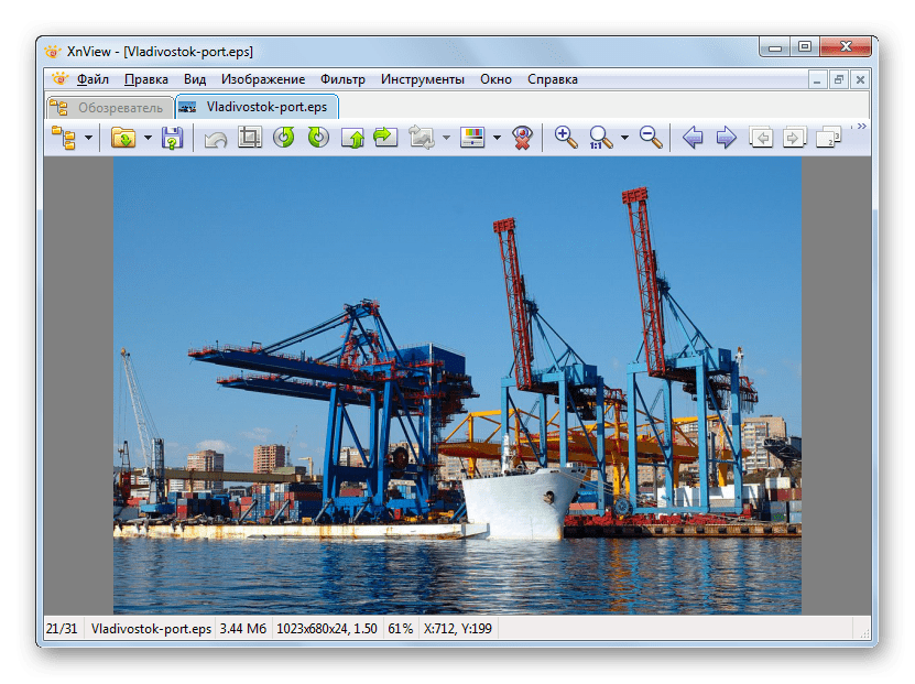 Более корректно картинки формата EPS отображаются через интерфейс другого мощного просмотрщика изображений – XnView .