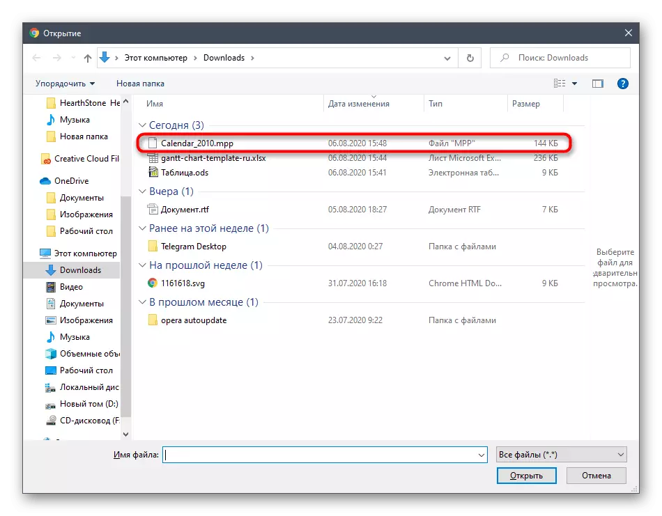 - Выберите нужный файл MPP в списке файлов на вашем устройстве или в облачном хранилище.