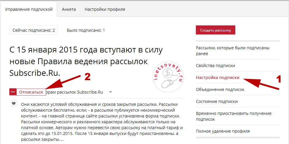 - Установите галочку «Отписаться», если не хотите получать новые письма рассылки.