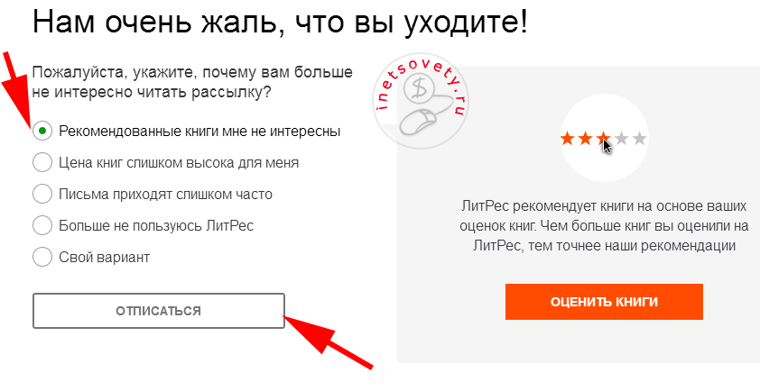 Если спрашивают причину отписки, то укажите один из вариантов после чего кликните по кнопке для подтверждения: