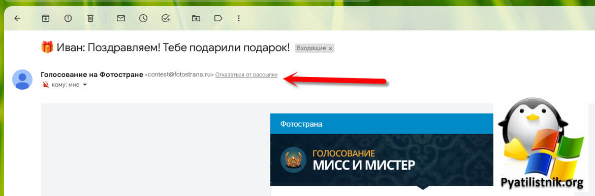 - Нажмите на нее, чтобы отписаться от этих писем.