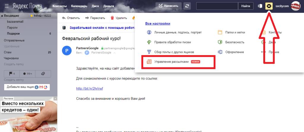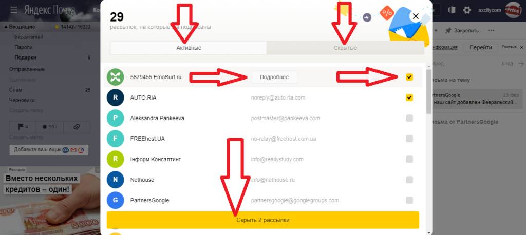 Подробнее: Отписка от рассылки на Яндекс.Почту