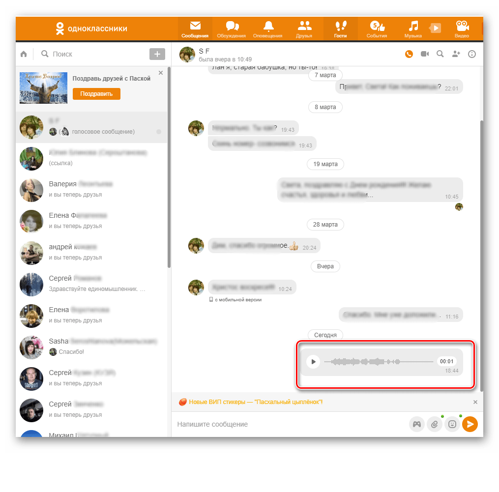 Отправка голосовых сообщений в Одноклассниках