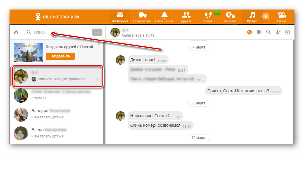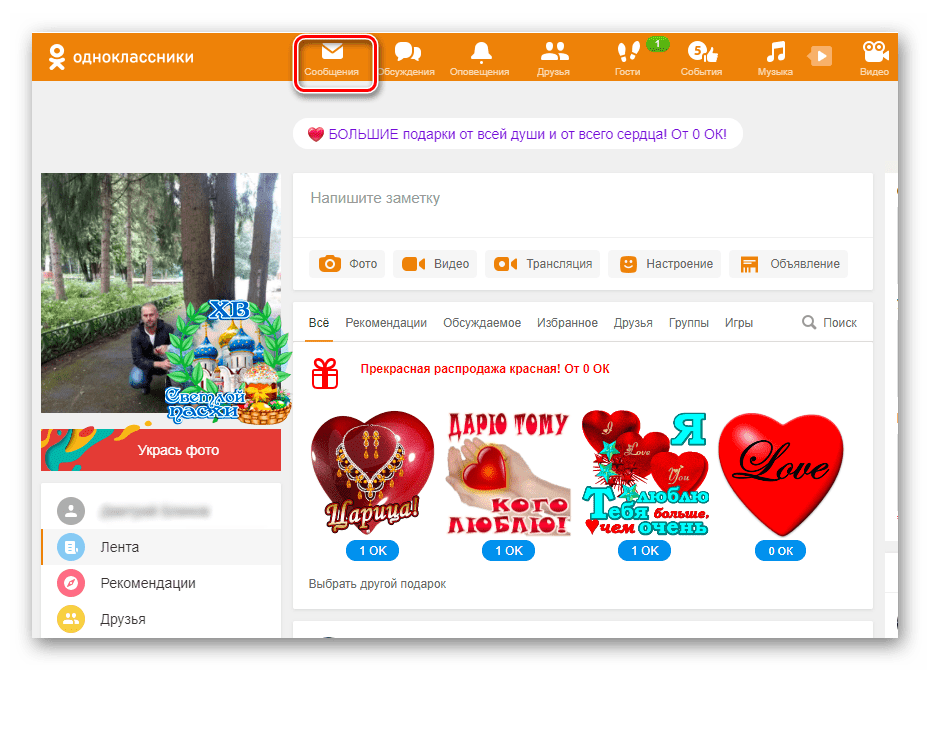 Как написать сообщение в Одноклассниках, используя компьютер