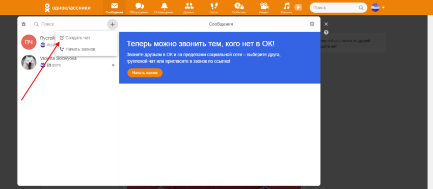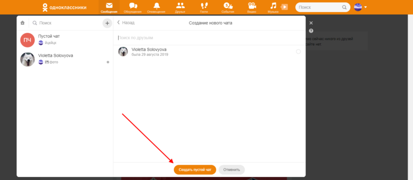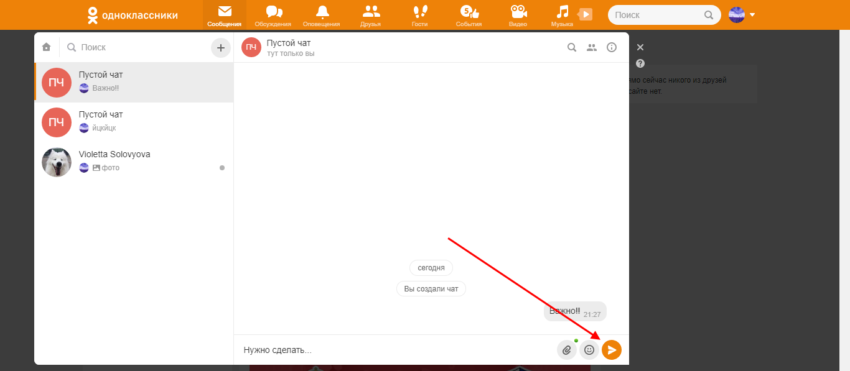 Таким образом, нет возможности отправить сообщение самому себе в одноклассниках, однако мы можем создать пустой чат только с нами. Для этого необходимо сделать следующее: