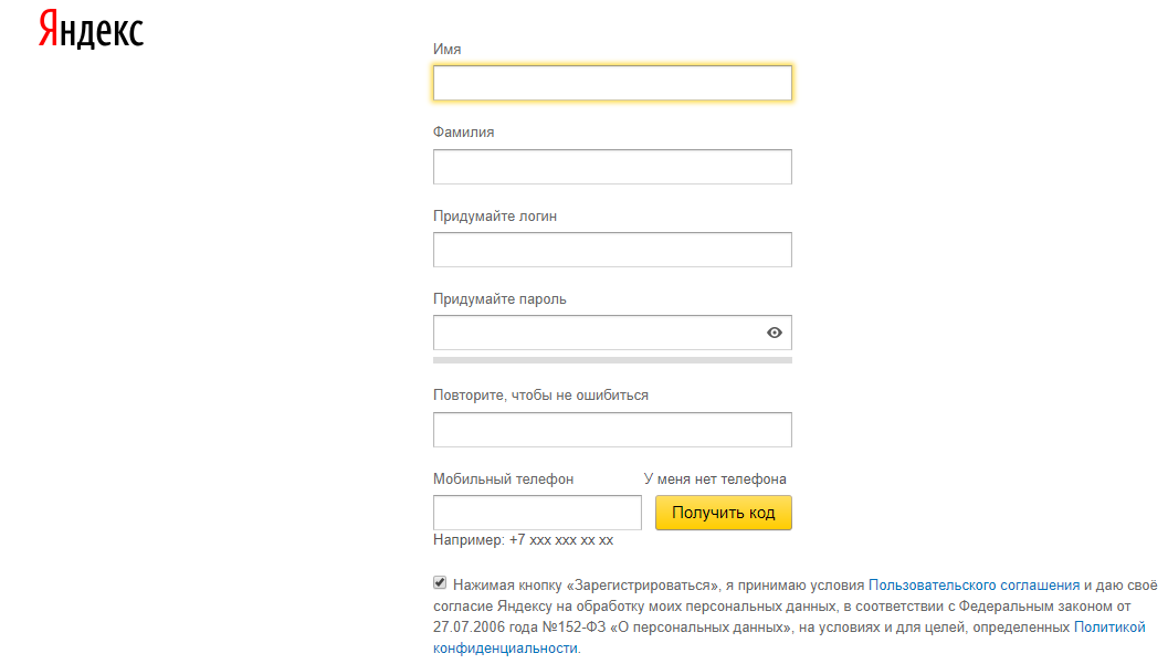 Заполняем поля с информацией. Очень желательно указать контактный номер телефона, он может пригодиться, например, при восстановлении пароля от электронной почты.