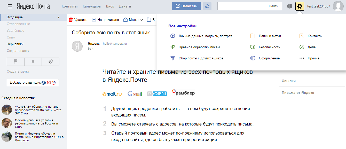 Кроме папки входящие в почтовом ящике от Яндекса есть и другие: