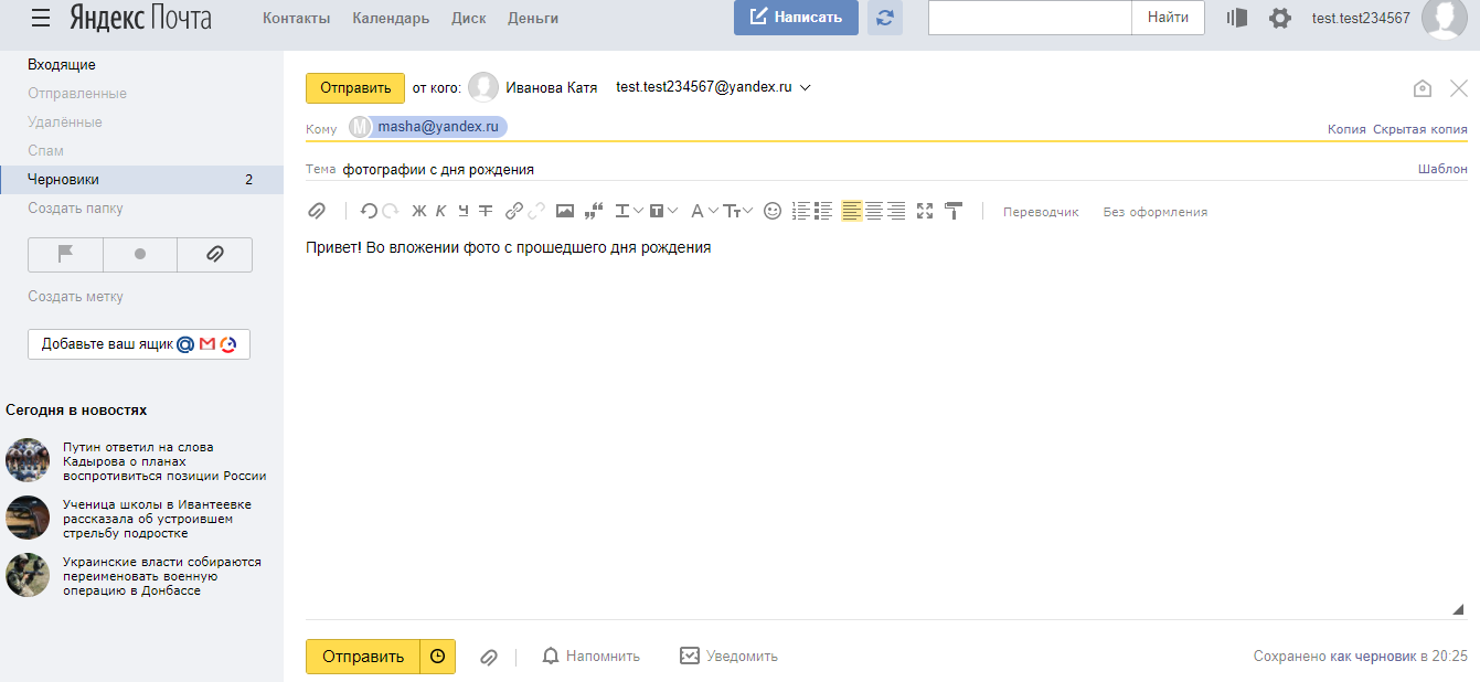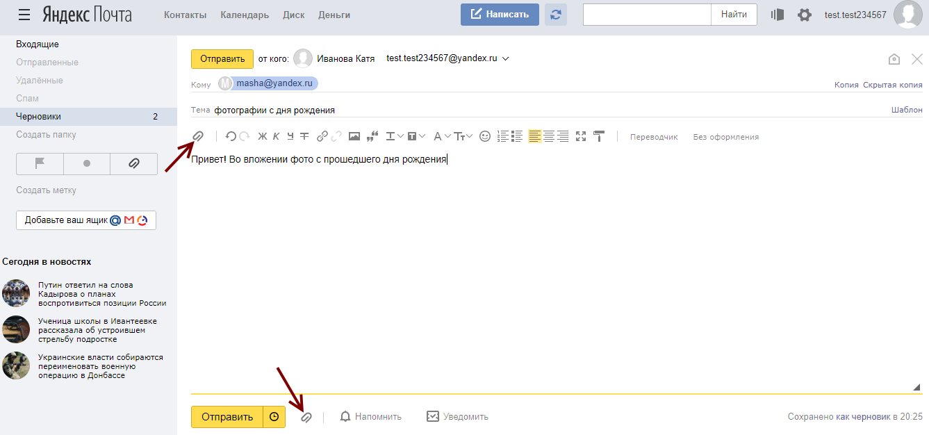 Еще один российский сервис Yandex также может похвастаться широкими возможностями отправки писем с прикрепленными материалами и качественным оформлением: