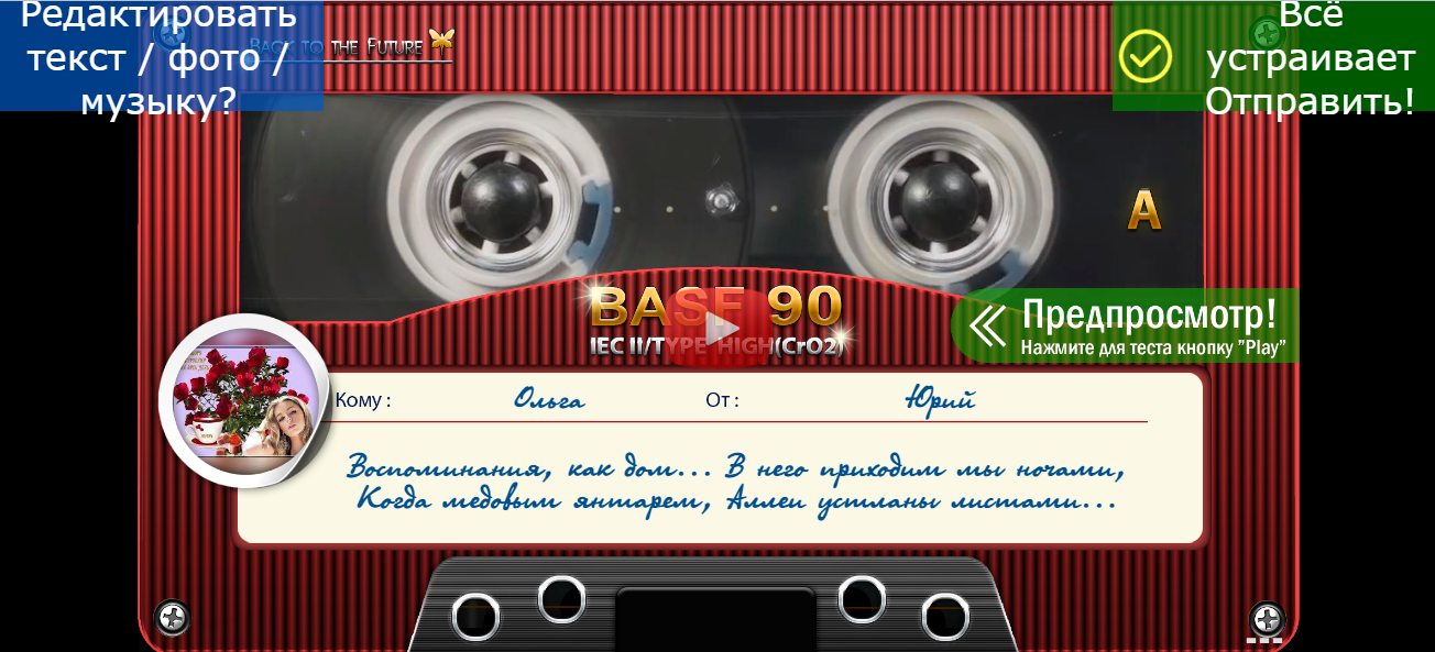 Создать эксклюзивную музыкальную открытку можно на 1romantic.com. Тут вы найдете готовые музыкальные шаблоны. Просто выберите понравившуюся открытку, укажите от кого она и загрузите фото. Затем просто отправьте по нужному адресу. Единственный минус ресурса — платный контент. Одна готовая открытка обойдется примерно от 40 руб. На некоторые плейкасты бывает акция и они предоставляются бесплатно.