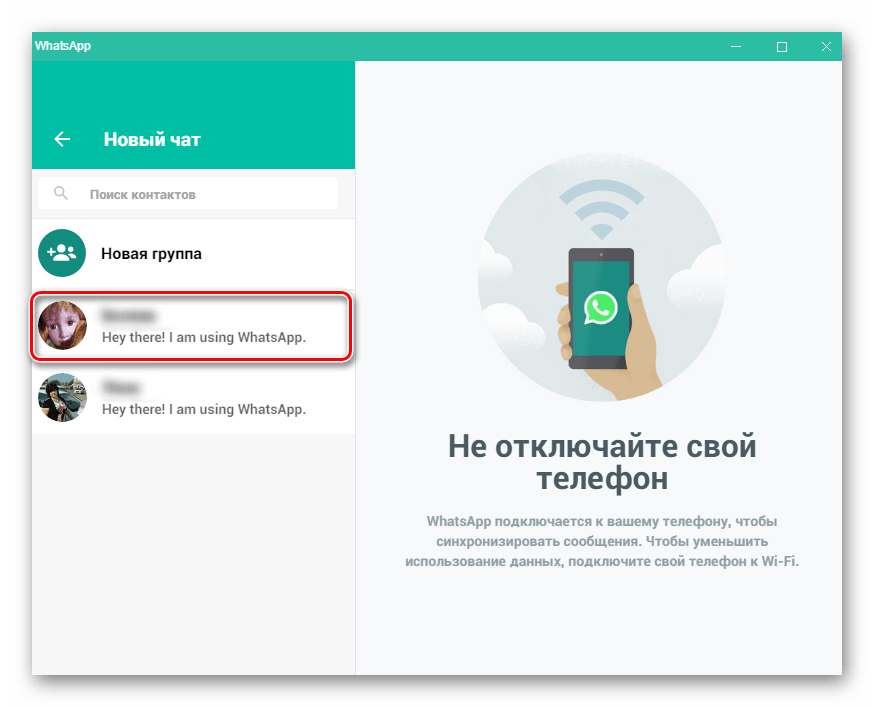 Запустите приложение Ватсап и выберите чат, куда требуется отправить ссылку на видеоролик.
