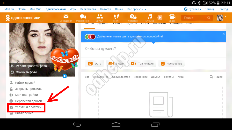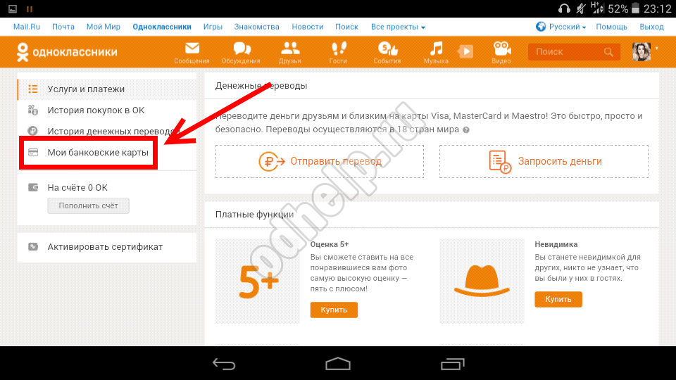 Как добавить платежную карту в Одноклассниках в мобильной версии?
